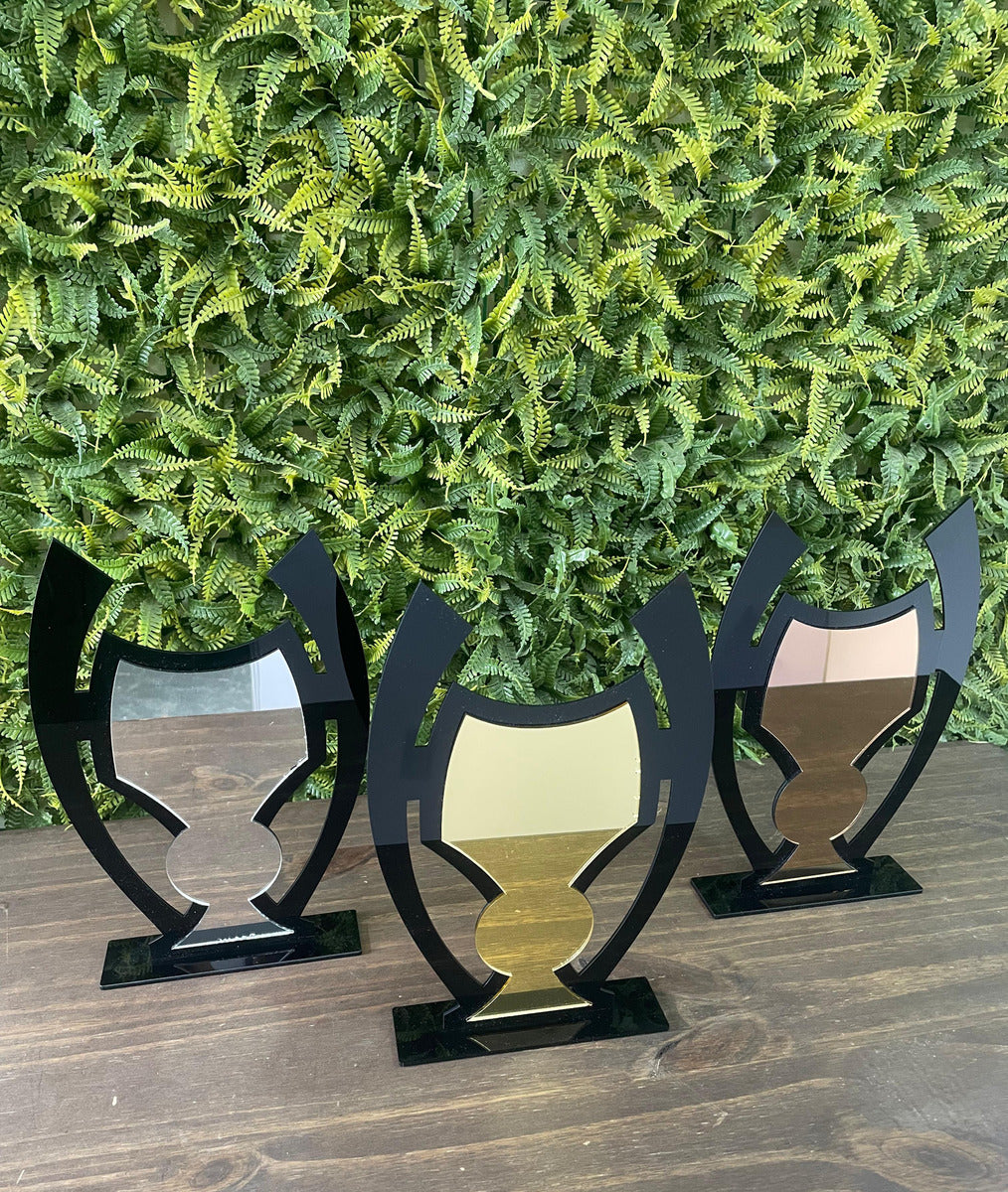 Apresentamos o Troféu Taça Dourado, Prata e Bronze, uma peça elegante e sofisticada que representa a conquista e o reconhecimento em competições. Com uma altura de 25 cm e largura de 16 cm, este troféu é ideal para premiar os melhores em diversas modalidades, como esportes, concursos e eventos escolares. Fabricado em acrílico de alta qualidade, o corpo do troféu exibe um design moderno e atraente, enquanto a base retangular proporciona estabilidade e um toque de classe. A combinação das cores dourado, prata e bronze não apenas destaca a importância da vitória, mas também se adapta a diferentes temas e ocasiões. Seja para um torneio, campeonato ou premiação escolar, este troféu é a escolha perfeita para celebrar o esforço e a dedicação dos vencedores. Com a marca de excelência da Premiação, cada peça é um símbolo de prestígio que ficará guardado na memória de todos os participantes.