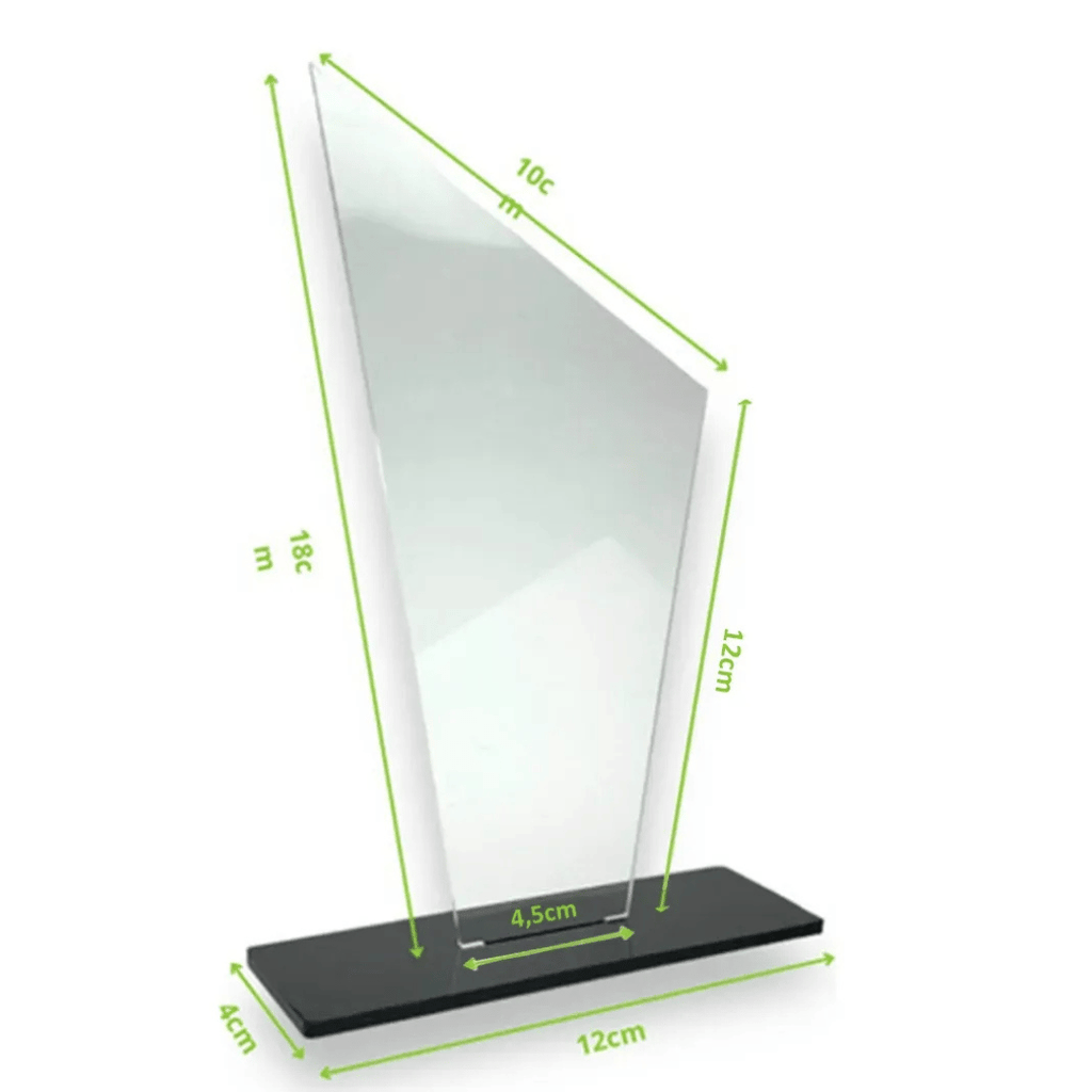 O kit acompanha 10 troféus fabricados em acrílico cristal de 2mm de espessura, formato triangular, com base retangular preta em acrílico para máxima estabilidade, ideais para premiações esportivas, escolares, eventos corporativos e reconhecimentos de desempenho. Os troféus chegam em branco, prontos para personalização com adesivos ou impressão.