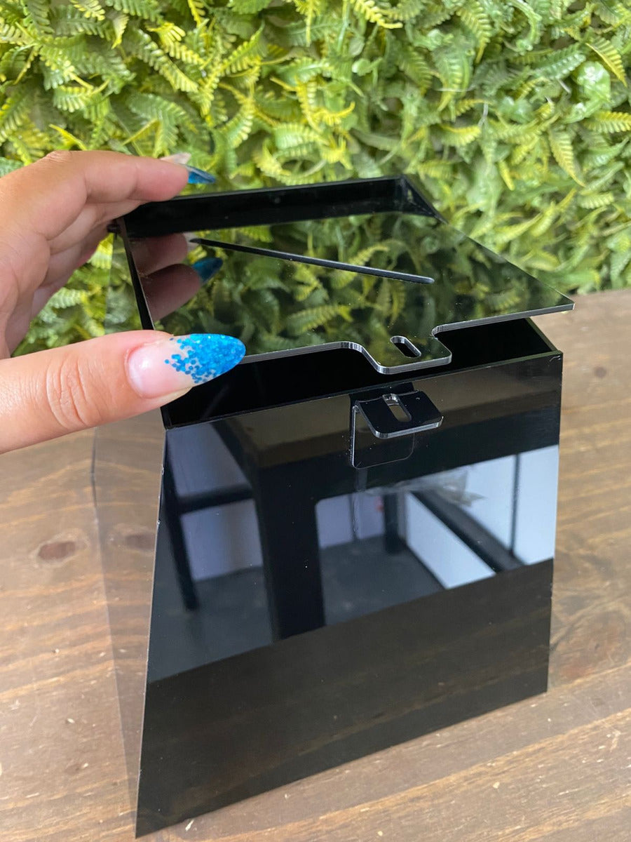 Urna de Acrilico Piramide Urna de Acrílico 100% acrílico original Cor.: Preto Formato: Modelo Pirâmide Corpo da Urna.: Alt. 20cm x Larg. 20cm x Prof. 20cm Tampa.: 12x12cm Acabamento.: Corte a laser, colagem e polimento cristalino. Abertura do rasgo na parte superior da tampa, para inserir cupons,dinheiro,qualquer tipo de papel. Utilidades.: Para Sorteios, Promoções, Eventos Obs.: Pode ser utilizado como cofre, para arrecadação de dinheiro. Capacidade de Cupons : Suporta 500 cupons tamanho A6-10x15cm Embalagem: Conteúdo com 1 unidade ¨¨¨¨¨¨ Não Acompanha Cadeado ¨¨¨¨¨¨